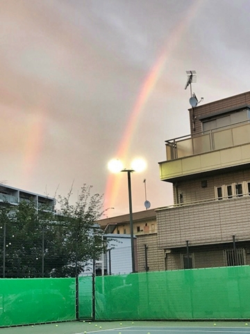 台風が去り、テニスコートの上空には 虹が現れた。
