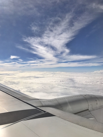 羽田は雨だったが、飛行機が上空へ 上がり 雲の上に出ると 青空が見えて来た。