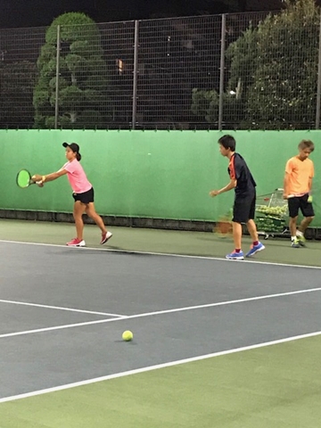 ナイターでの練習が似合う季節 ナイターでのジュニア達のレッスンが似合うシーズンになってきた。 夏のように蒸し暑くはなく、爽やかな感じで練習が出来ている。 でも、もうじきに恐怖の寒い季節がやって来る。 イヤだ、イヤだ! あと1ヶ月は、このような気持ち良い環境で練習出来れば嬉しいのだが....