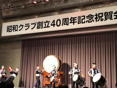 昭和クラブ創立40周年祝賀会 グランドプリンスホテル新高輪の飛天の間で昭和クラブ創立40周年祝賀会が盛大に執り行われた。 余興の「鼓動」のパフォーマンスが素晴らしく、昭和クラブ40周年に華を添えた。 素敵な仲間達と50周年に向けて行きたいと思う。