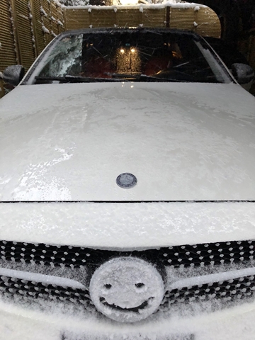 娘のイタズラ 先週 雪が積もった時、車にイタズラをされた。 「誰がやったのかな? 子供が可愛くイタズラをしたのかな?」なんて思っていた。 後で分かったことだが、娘がベンツのロゴを雪で覆って、ラブピースのマークに変えちゃったということだったようだ。 犯人は娘であった。