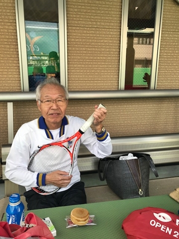 お誕生日おめでとう! 今日は240テニスカレッジのテニスコートのオーナーである井田さんの誕生日。 何も出来なかったが、皆で歌を歌って祝った。 バンドをやってらっしゃるので、ラケットをギター見立ててのポーズ。 参りました!