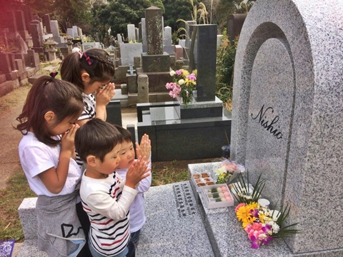 大勢でやって来て、訳もわからず お墓に手を合わせる姿は、本当に可愛い。