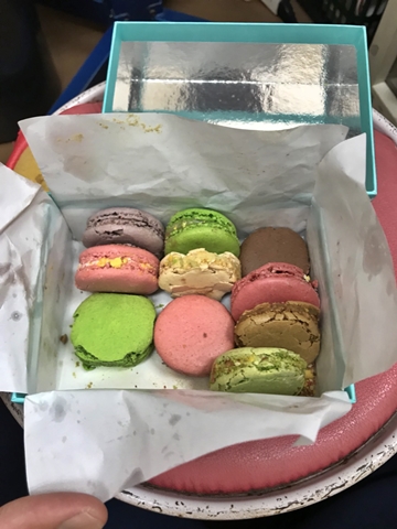 パリからのお土産 ジュニアの璃皇がフレンチオープンの観戦に行っていた。 凄く刺激を受けたのではないか? お土産にパリの有名なお菓子、マカロンを買って来てくれた。 僕は名村の試合を見に来ているので、まだ食べてはいないが、美味しそう。 名村は2回戦を無事パスして、明日が準々決勝戦だ。 頑張ってもらわないと...