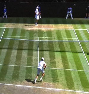 フェデラーを破って堂々のベスト4入りを果たしたアンダーソンと、ビッグサーバーのラオニッチを倒してのイズナーとの準決勝戦。