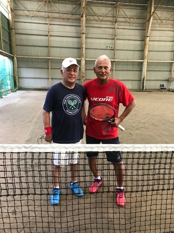 上村先生とのテニス 上村先生とそのお仲間達とテニスを一緒にやりました。 テニスを本当に愛している人達とのテニスは、本当に楽しくやり甲斐があります。 先生はまだバイタリティーが衰えず、フォアハンドをバシバシ打たれていました。