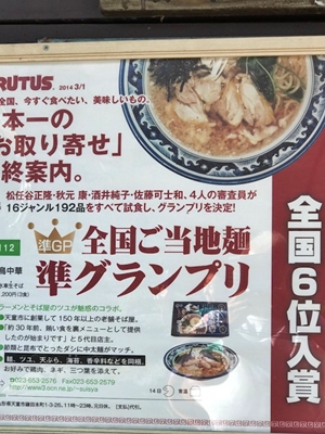 日本蕎麦屋さんが作る、全国B級グルメランキングの6位に入賞したというラーメンを食べました。