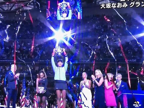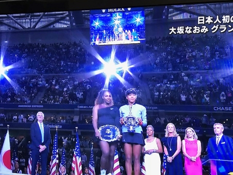 大坂なおみの最後までクールなプレーでセレナを圧倒、6-2.6-4で全米のタイトルを日本人として、初めて取った。