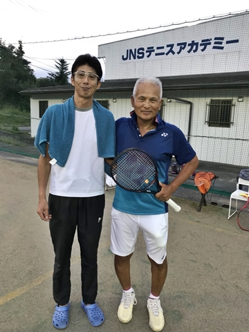 JNSテニスクラブで練習 スタッフの名村が軽井沢のシニアのトーナメントに出場の為、軽井沢に同行。 佐久にあるJNSテニスクラブのアウトドアコートを借り、練習しました。 標高が少し高いので、気圧の関係で 少しボールが飛ぶかな? 以前 ジュニアの合宿の際、JNSテニスクラブお世話になりました。 その時に知り合った渡辺くんが、現在もJNSを元気で手伝っていました。 早速、2ショット! 名村は、相手が棄権し、ラッキーかどうかは分からないが、明日の準決勝に進みました。 僕は 明日の準決勝は見ずに、東京へ戻ります。