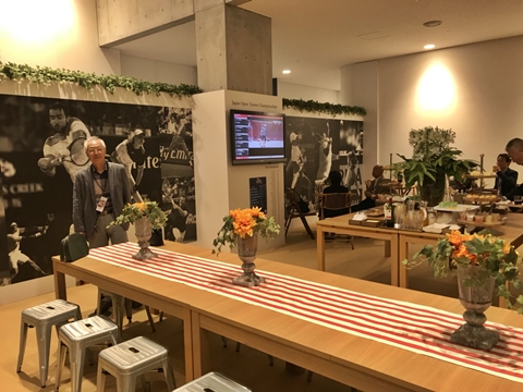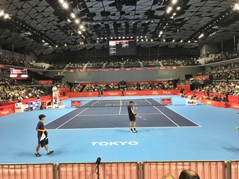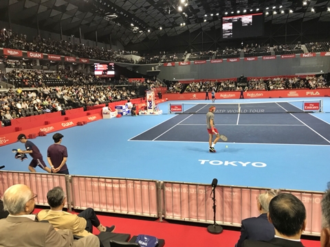 今日の楽天は外国人オンパレード 今日の楽天オープンは、日本人が多く登場した昨日とは違い、シングルスは外国人オンパレード。 久地のテニスコートのオーナー井田さんとスタッフの飯島が一緒に観戦した。 VIP席だから、選手が直ぐそこにいる感じで臨場感抜群である。 また、ラウンジでは 軽くサンドウイッチと小さなお寿司、ドリンクとワイン等も用意されており、最高だ。 今年ブレイクしたギリシャのチチパスの試合も観戦できたそうだ。 明日は錦織もナイトセッションに登場する。 胸が踊る試合を期待したい。