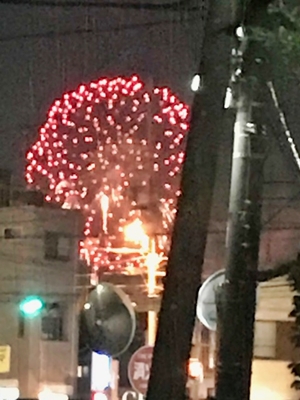調布の花火 秋の最中に、二子玉の花火大会と調布の花火大会が催される。 結構楽しみにしていて、このシーズンになると待ち遠しい。 240テニスカレッジの側の道、電柱の間から勧賞。 今晩もしっかりと楽しめた!