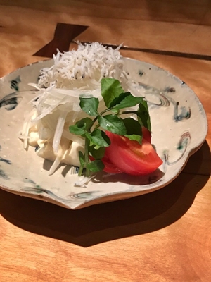 豆腐と玉ねぎのサラダとだし巻き卵。