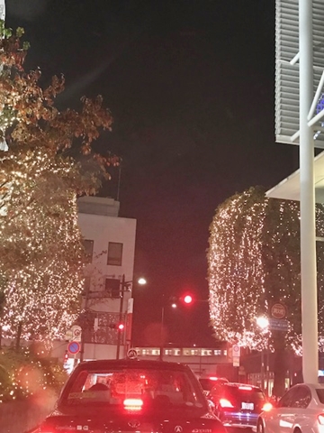 二子玉近辺を車で走っていると、クリスマスディスプレイが美しかった。