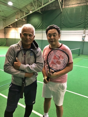 横山君と久し振りにテニス ピアニストの横山君とワイフのお料理の先生 藤田さん、ワイフとテニスをしました。 和気藹々と、本当に楽しくプレイできたと思います。 横山君はテニスが大好きで、一時、はまっていたのに 最近はやってなかったみたい。 でも、テニスの腕は 相変わらず良かった。 練習すれば、とんでもなく上手くなると思う。