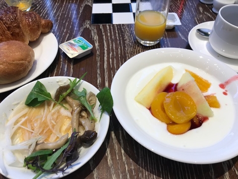 年齢のことや、体重過多のことも考え、コーヒー、パン、サラダ、ヨーグルトでまとめました。