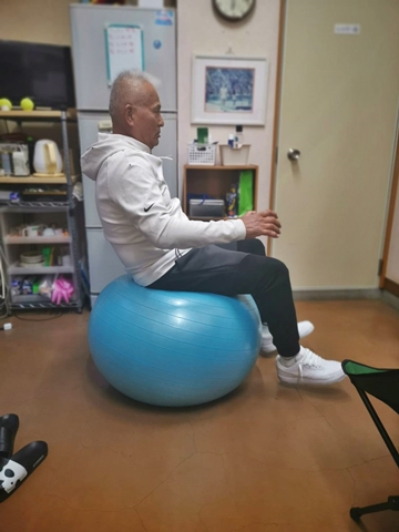 バランスボールでトレーニング スタッフがバランスボールを買って来たので、毎日のように乗る練習をしている。 ようやく、3分以上 足をつかずに 乗れるようになった。 最初は10秒も乗れなかったのに... 「毎日」がキーワードだよね!