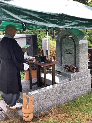 生憎の雨の中、真言宗のお坊さんに来て頂いた。