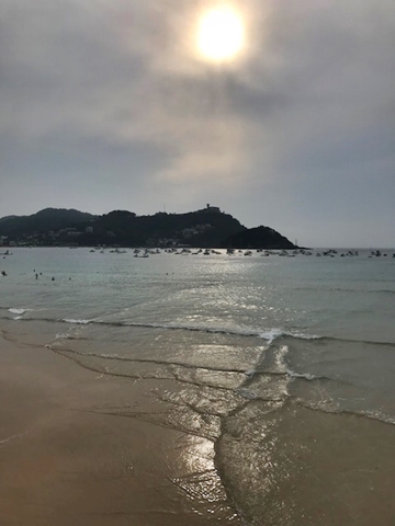 サン・セバスチャンに入る リゾート地として有名なサン・セバスチャンにビルバオから移動した。 映画で見たような光景が目に入って来た。 子供からお年寄りまで、海岸の周りの道を多くの人が歩いている。 ふと「何処へ行くのですか?」と尋ねたくなる。