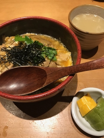 ごぼうが入っていて、優しい、すき焼き風の親子丼って感じであった。