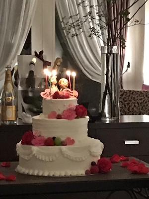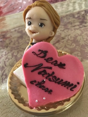 ワイフの誕生日サプライズプレゼントとして、ワイフをモデルに作った人形がのったバースデー ケーキをいただいた。