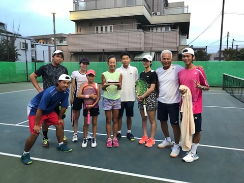 トーナメントジュニアとスタッフで名村の誕生日をテニスコートで祝った。
