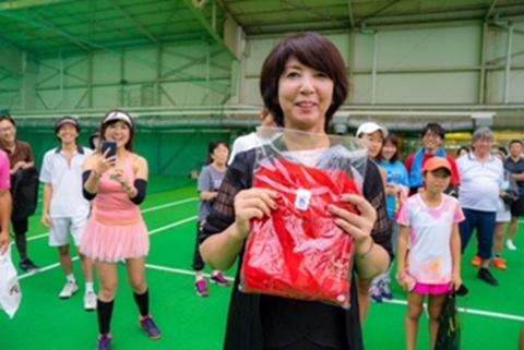 フェローズに参加してくれたプロテニスプーヤーが持ち寄ってくださったテニスグッズと、協賛して下さった会社からの素敵な協賛品が参加者に当たる抽選会。