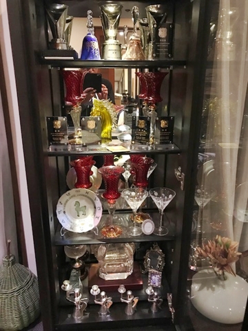 リビングに飾ってあるもの 僕はあまり優勝カップとかには固執する性格ではなく、現役時代 は優勝カップを人にあげたりもしていた。 ただ、今はリビングに ベネチアングラスと一緒に、全日本で優勝した時のクリスタルとか 優勝カップのレプリカを飾っている。