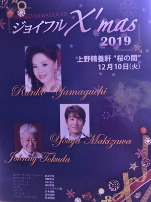 クリスマスコンサート 友人のジョニー徳田さんのクリスマスコンサートに行って来ました。 ラテンの曲が好きなジョニーさん、流石に上手かった。 聞きに来た方の心をしっかり捉えていました。 また、白、赤、紫のタキシードを素敵に着こなしていました。 素晴らしかったです。