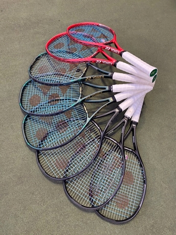 僕の使っているヨネックスラケット 僕が作っているヨネックスのラケットです。 Vコア98の赤と黒。 これは西岡も使っており、全体的に柔らかく、コントロールも抜群に良いですよ。 また グリーンのラケットは、Vコアプロ97。 バブリンカが使っているラケットで、少し硬めだが、これもコントロール力抜群。 皆さんも是非、使ってみて下さい。