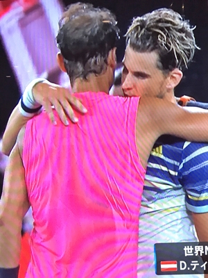 ナダルがティエムに6-7. 6-7.6-4.6-7で敗れた。