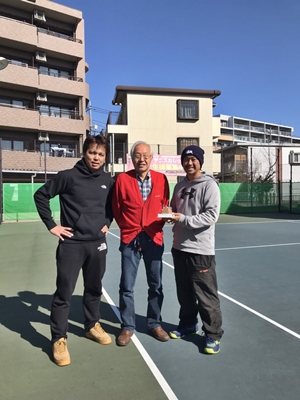 トップスのケーキを買って、オーナーの井田さんを呼んで 240テニスカレッジで祝った。