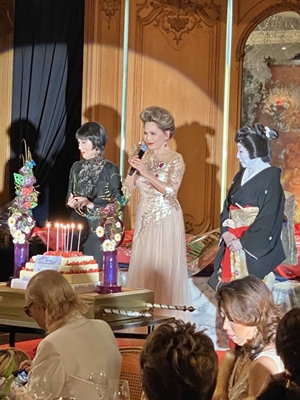 デヴィ夫人の傘寿の会 ニューオータニのトゥールダルジャンでデヴィ夫人の80歳の誕生日会が行われた。 海外からのお客様30人を含め80人が招かれた。 素晴らしいゲストと美味しいお料理とシャンパンとワイン。 最高であった。 流石にデヴィ夫人! 100歳までは、このまま美しく生きられるであろう。 おめでとうございます。
