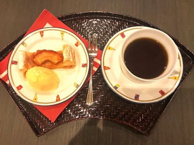 レピドールのアップルパイとジャルディーノのバニラアイスクリーム。
