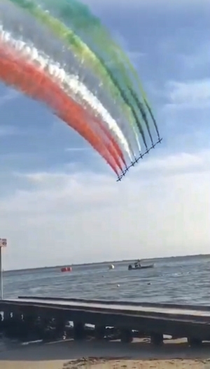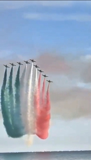 イタリア空軍の国民に向けてのメッセージ コロナウィルスのせいで大変な困難を強いられている国民を元気づけようと、イタリア空軍が行った航空ショーの画像がこれである。 頑張りが出る、いかにもイタリア的なメッセージだと思った。