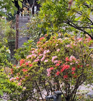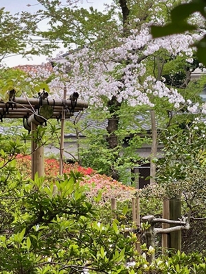 我が家の窓から、お隣の家の素敵なお庭の借景が出来る。