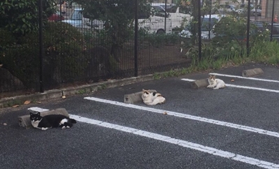 猫たちもソーシャルディスタンスをしっかりと守っています。