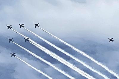 今日ブルーインパルスが、新型コロナの対応にあたる医療従事者の方々に対して、感謝と敬意を表す為の飛行を行なった。