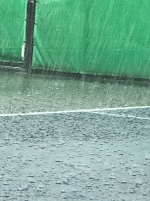 「さあ、テニスだ」と気合を入れ用意していたら、突然の大雨。