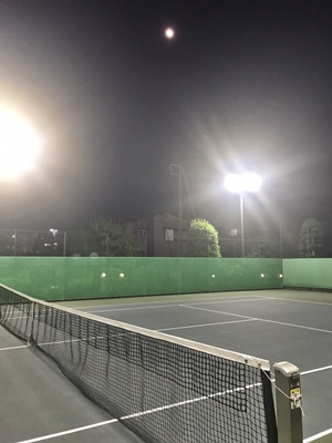 3月末以来のナイター使用 久しぶりにナイター照明の中でのレッスン。 昼間は暑くて大変だったが、夕方からは涼しくなり、生徒さんも楽しくテニスをされていた。 後は、生徒さんが戻るのを待つだけだ。 まだまだ、時間はかかると思うが?!