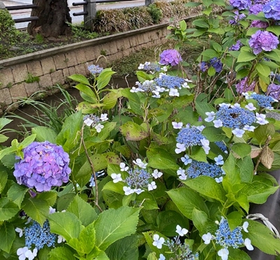 今日も雨だったが、紫陽花とヤマボウシが美しさを競い合うように咲いていた。