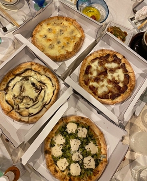 僕のお気に入りは、野沢菜と胡麻豆腐のピザ。