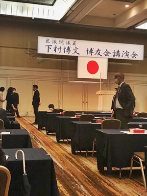 衆議院議員 下村博文先生の博友会幹事会及び講演会に出席 東京プリンスホテルで行われた、下村政調会長の博友会幹事会及び講演会に出席した。 ホテルでの講演会なので、大きな鳳凰の間で催されたのだが、コロナのこともあり、長椅子に2人だけ座るように注意を払っていた。 下村先生は、偶然にも僕と同じ早稲田大学卒業で生年月日も同じである。 不思議な縁である。 講演のテーマは、「Withコロナ、Afterコロナ、新たな国家ビジョン」という内容であった。