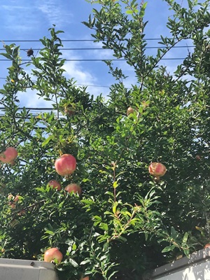 240テニスカレッジの納屋の横にザクロの木がある。