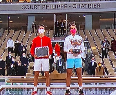 13度目の全仏のタイトルを狙うナダルがジョコビッチを全く寄せ付けず、6-0.6-2.7-5のスコアーで圧勝した。