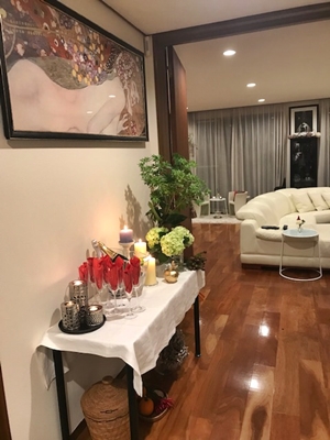 我が家にお客様をお迎えするため、お花とキャンドルを…