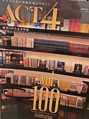 ACT4創刊100号 佐藤真理子さんが2003年にスタートさせたACT4が、創刊100号! 心からお祝い申し上げます。 富裕層向けの雑誌だが、クオリティーが高く「よくぞここまで続けられたなぁ」と心底、感心しています。 早稲田大学の先輩でもあるマリちゃん、これからも益々頑張って続けて下さいね。