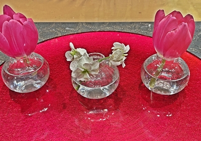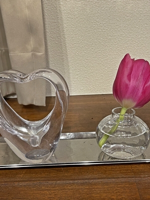リビングに飾っていたチューリップが開いてしまったので、一輪挿しに入れ替えた。