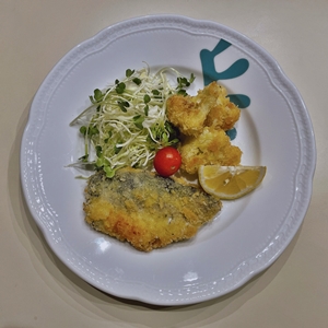 鯵とカリフラワーのフライ 今日の夕飯のメインは鯵とカリフラワーのフライ。 鯵のフライが美味しいのは分かっているが、意外と知られていないのがカリフラワーのフライではないか? でも、これが美味い。 大満足でした。