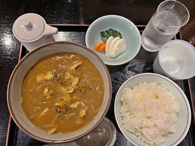 僕は、何時もカレー蕎麦にご飯を付けてもらうんだ。