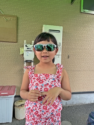 僕のサングラスをして、しっかりとボールを拾ってくれた。